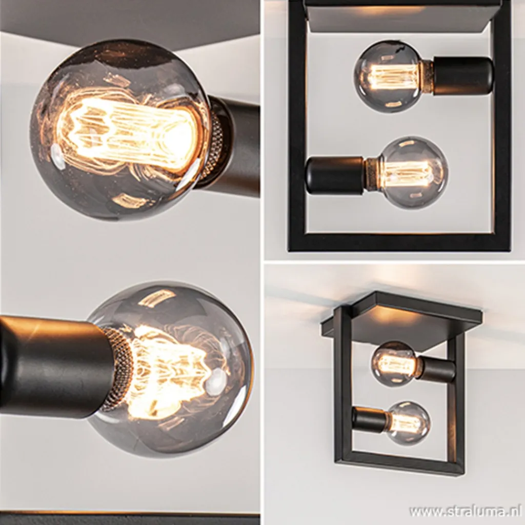 Straluma Strakke zwarte plafonnière metaal Frame> Plafonnières|Woonkamerlampen