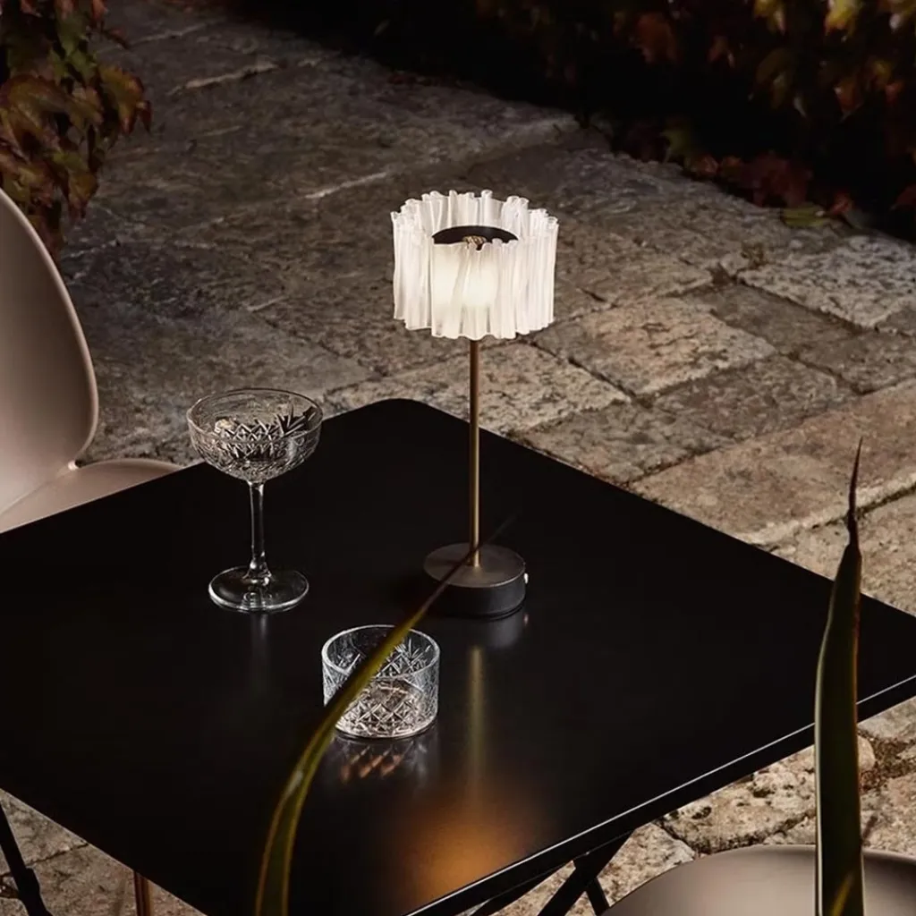 Deze elegante tafellamp is oplaadbaar en daarmee volledig draadloos. U kunt deze dan ook overal in huis meenemen en neerzetten. Deze leuke tafellamp is dimbaar dmv de touchdimmer op de voet. Het tafellampje wordt inclusief oplaadkabel geleverd. De kap heeft een prachtig design dat volledig met de hand wordt gemaakt.