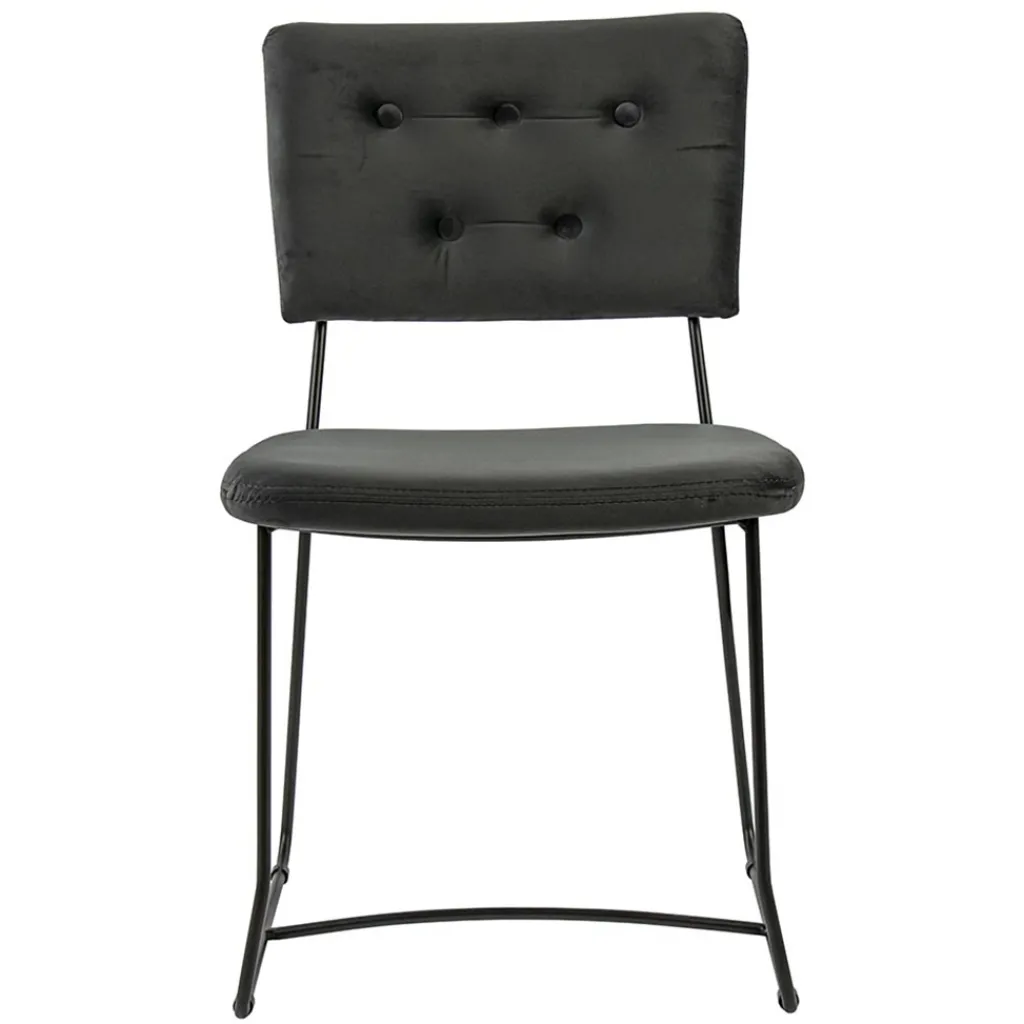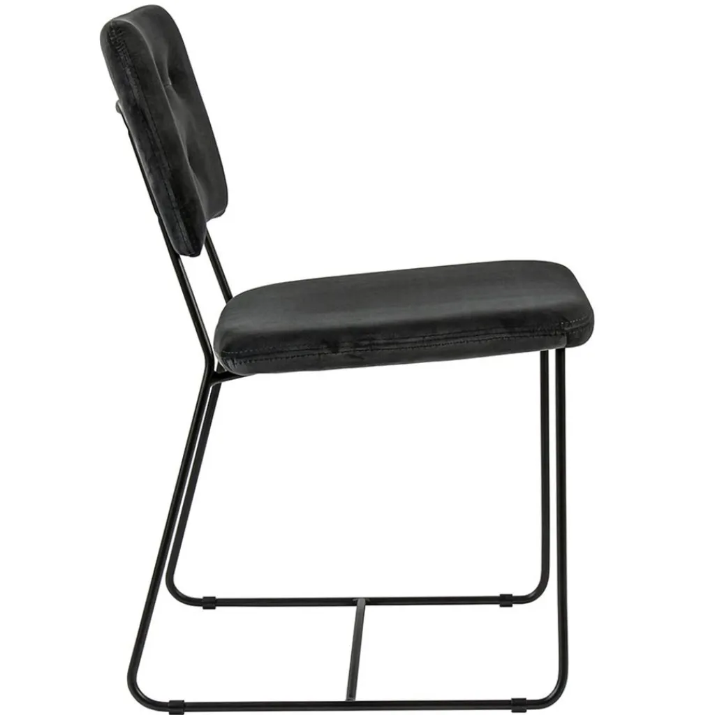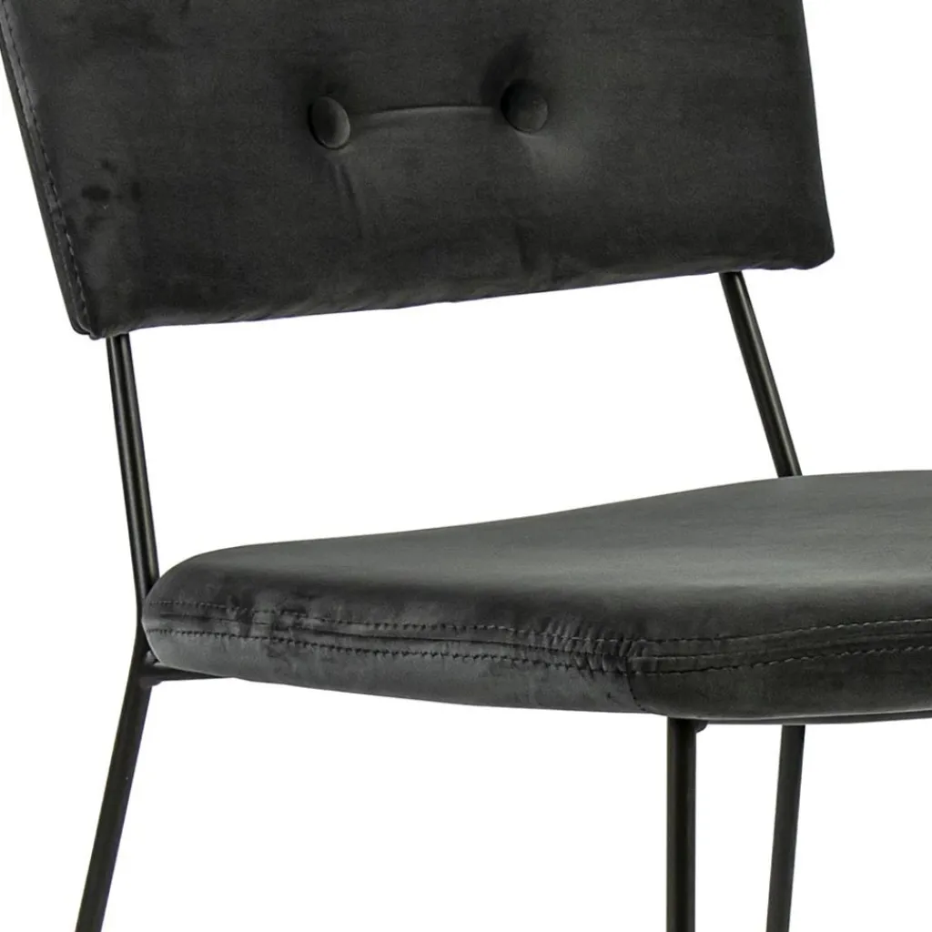 Dit hippe stoeltje past in vrijwel ieder interieur. Van Scandinavisch tot strak klassiek. De stoel heeft een stoffen zitting en rugleuning, beide uitgevoerd in het velvet grey. De zitting wordt ondersteund door een metalen frame dat is afgwerkt met een mat zwarte finish. Het dunne frame houdt de stoel luchtig en open en zorgt dat de aandacht mooi naar de zitting gaat. Ideaal met 6 om een robuuste eettafel.