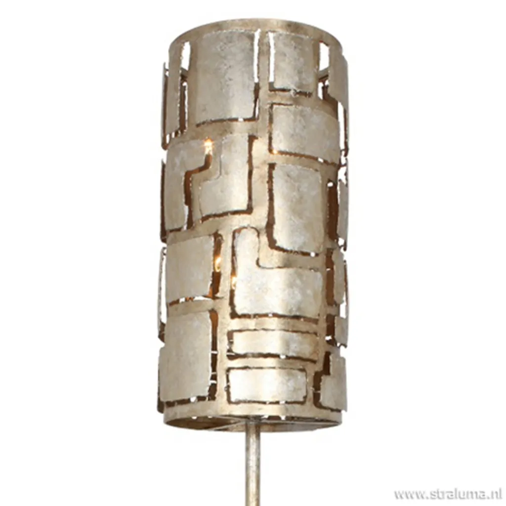 Deze metalen design vloerlamp is uniek in z’n soort. De kap is gemaakt van metaal dat is opengewerkt waardoor het licht een mooie en subtiele verspreiding heeft. De kap is van binnen voorzien van zes lichtbronnen zodat de lamp genoeg licht geeft. De kap staat op een metalen voet die in dezelfde kleur als de kap is uitgevoerd, ambachtelijk zilver. Dit geeft de staande lamp een wat klassiekere look.