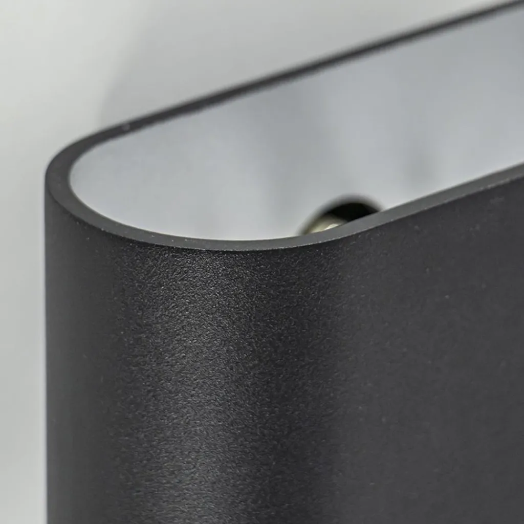 Een moderne wandlamp met een strak design. De metalen wandlamp is uitgevoerd in het mat zwart en voorzien van een zilveren binnenzijde. De ovale kap zorgt voor een sfeervol zandloper effect op de muur en creëert zo mooie sfeerverlichting. Erg leuk in een hal of de slaapkamer, maar ook in de woonkamer functioneert deze moderne wandlamp perfect. De mat zwarte wandlamp dient wel direct op een stroompunt te worden aangesloten, deze is namelijk niet voorzien van een snoer. Ook de lichtbron (G9) is niet inclusief.