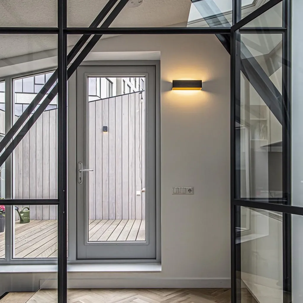 Een minimalitisch design met een sfeervol effect. Deze moderne wandlamp zorgt door het zandloper effect op de muur voor een fijne sfeerverlichting. De zwart met gouden wandlamp is rechthoekig en van binnen voorzien van LED verlichting. Het LED geeft met 2700 Kelvin warm witte verlichting en zorgt met 600 lumen voor een prima lichtopbrengst. Het matte zwart zorgt dat de rechthoekige LED wandlamp mooi overloopt op een donkere wand, of juist meer opvalt op een contrasterende kleur. De mat zwart met gouden wandlamp heeft geen snoer en dient direct op een stroompunt te worden aangesloten. Ideaal voor extra sfeer in de woonkamer, hal of slaapkamer.