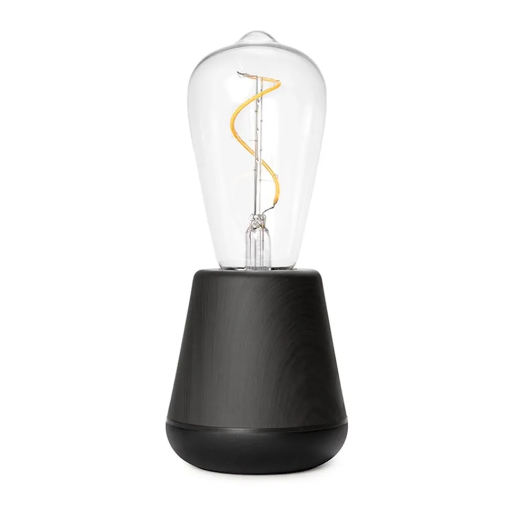 Straluma Zwart houten tafellamp oplaadbaar met helder glas> Tafellampen|Woonkamerlampen