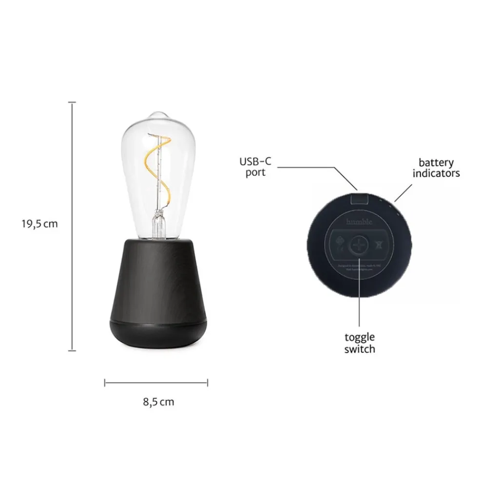 Wat een super leuke sfeermaker is dit. Deze kleine tafellamp is een ideale toevoeging aan het interieur en kan overal worden neergezet. Het tafellampje is namelijk voorzien van een oplaadbare accu zodat hij prima zonder snoer kan functioneren, tot wel 140 uur. De tafellamp heeft een zwart houten voetje en is gecombineerd met een heldere E27 LED lichtbron. Deze lichtbron is vervangbaar en dimbaar. Het voetje heeft een ingebouwde dimmer die werkt in 3 standen. Met de knop onderop schakelt u gemakkelijk tussen de standen candle, ambient en work. Daarnaast ziet u aan de onderzijde dmv lampjes ook hoe vol de batterij nog is. Raakt deze bijna leeg, dan laadt u de lamp gemakkelijk op met de meegeleverd USB kabel, of één van de beschikbare draadloze chargers (exclusief). De kleine tafellamp is IP43 goedgekeurd, een beetje spatwater kan dus geen kwaad. Zet de tafellamp op een bijzettafel, in een kast of neem hem mee naar uw tuin of balkon. Waar de draadloze lamp ook staat, hij zorgt voor een fijne sfeer. Er zit zelfs een opbergzak bij zodat hij ook mee kan op reis.