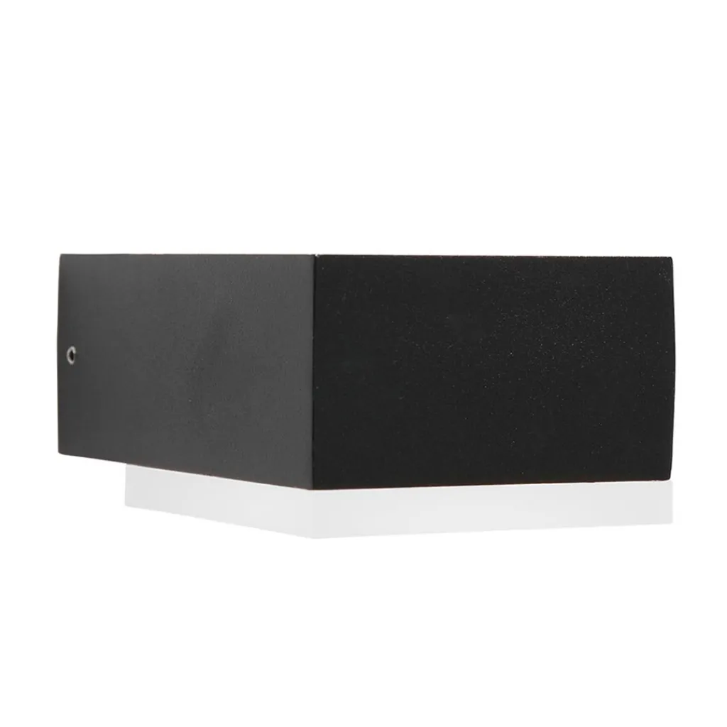 Een kleine maar krachtige buitenlamp. De moderne wandlamp is IP54 goedgekeurd en kan op diverse plekken in de tuin worden toegepast. De rechthoekige buitenlamp is gemaakt van aluminium en uitgevoerd in het zwart. De behuizing is van onder afgewerkt met een kunststof kap die er voor zorgt dat de verlichting mooi wordt verspreid. De zwarte buitenlamp is voorzien van LED en geeft met 2700 Kelvin een sfeervolle warm witte verlichting.
